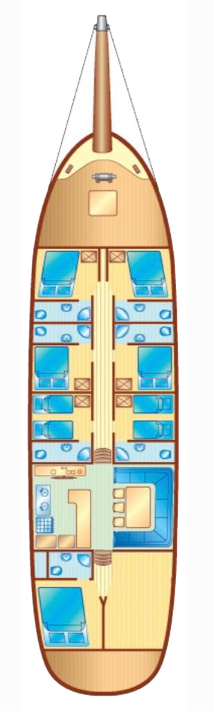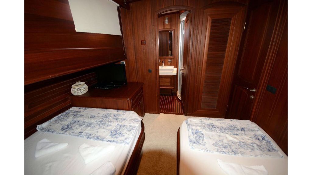 The luxury gulet Artemis Simay combines elegance, comfort, and modern amenities to create an exceptional blue cruise experience in Turkey. Measuring 24 meters, she features three extremely spacious cabins — one master cabin with a double bed and two twin cabins with separate lower double and single beds — each with private bathrooms, shower cubicles, and electric flush toilets. Fully air-conditioned and tastefully designed, Artemis Simay offers a large salon with dining facilities, a fully equipped galley, and ample outdoor areas including a sun deck with mattresses and a cushioned aft dining area ideal for alfresco meals. Guests can enjoy a range of recreational equipment such as a speedboat with a 75 HP engine, water skis, canoes, and snorkeling gear, along with entertainment options like Wi-Fi, satellite TV, and a music system. With her professional crew, advanced navigation systems, and thoughtful details, Gulet Artemis Simay ensures a seamless and memorable luxury gulet charter along the captivating coasts of Bodrum, Göcek, and Marmaris.