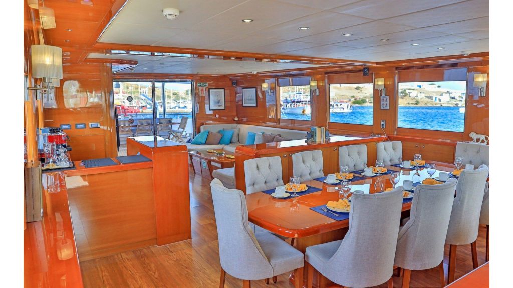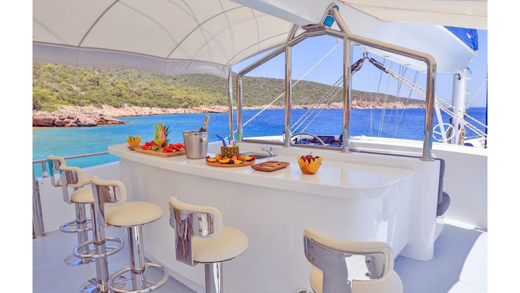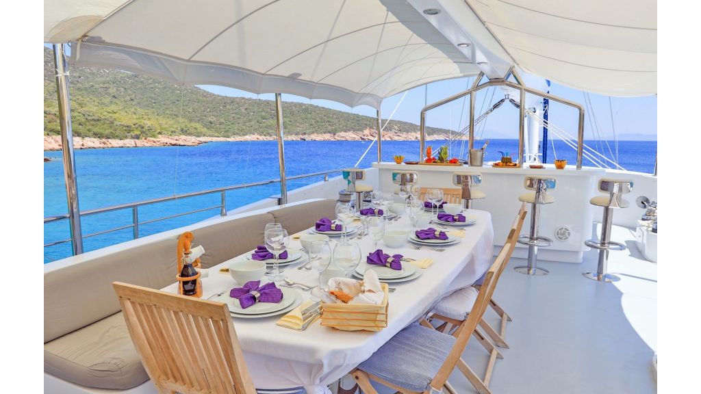 The charter price for the gulet includes an average of four hours of cruising per day over the course of the charter, crew, water, gas, Turkish port and harbor fees, insurance and use of the yachts’ equipment and toys.