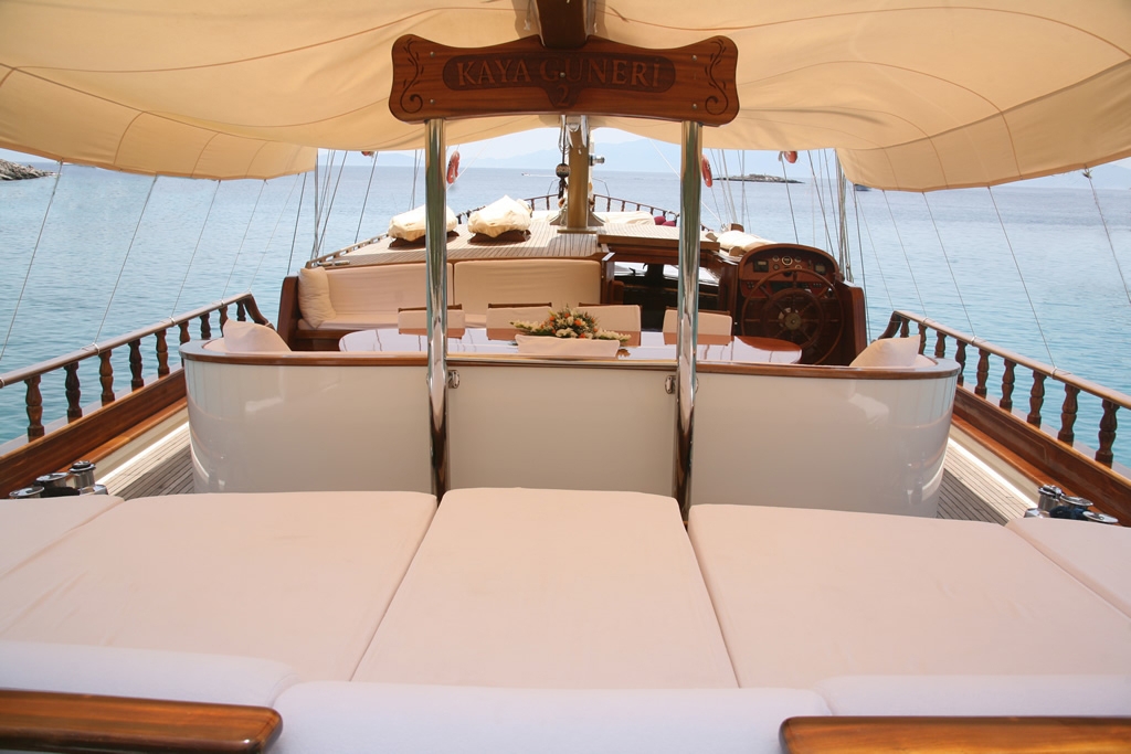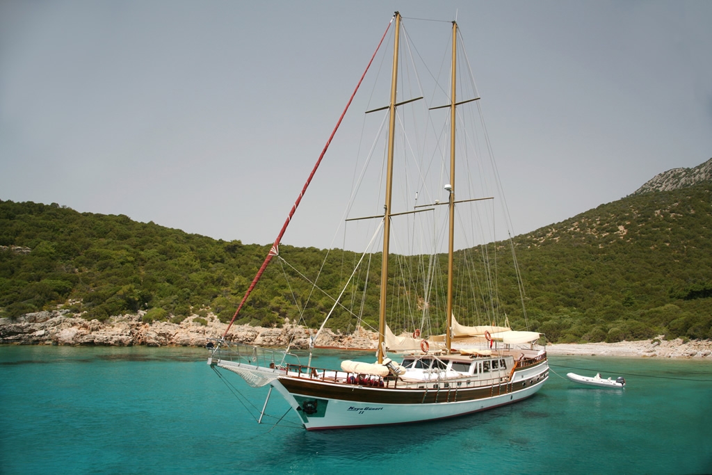 Kaya Guneri II is one of the best-value gulets available, combining traditional craftsmanship, comfort, and excellent service at an attractive charter price with Southern Cross Blue Cruising. This traditionally built schooner features six beautifully decorated en suite cabins and has long been a favorite among guests who appreciate a well-built and professionally operated gulet. With a friendly and experienced four-person crew, the yacht offers generous space throughout, including a large sun deck, multiple inviting seating areas, a stern dining area, and a forward seating space perfect for sunset drinks. Inside, guests can relax in the comfortable traditional saloon, while meals are prepared in a separate galley. Enhanced by an impressive selection of water sports equipment for her category, Kaya Guneri II is an ideal choice for families and groups of friends seeking a relaxed, spacious, and memorable blue cruise experience at outstanding value.