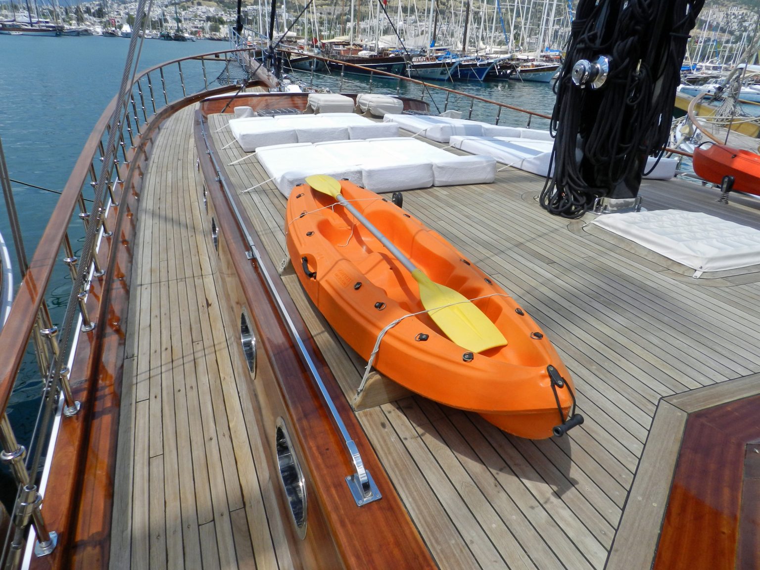 The charter price for the gulet includes an average of four hours of cruising per day over the course of the charter, crew, water, gas, Turkish port and harbor fees, insurance and use of the yachts’ equipment and toys.