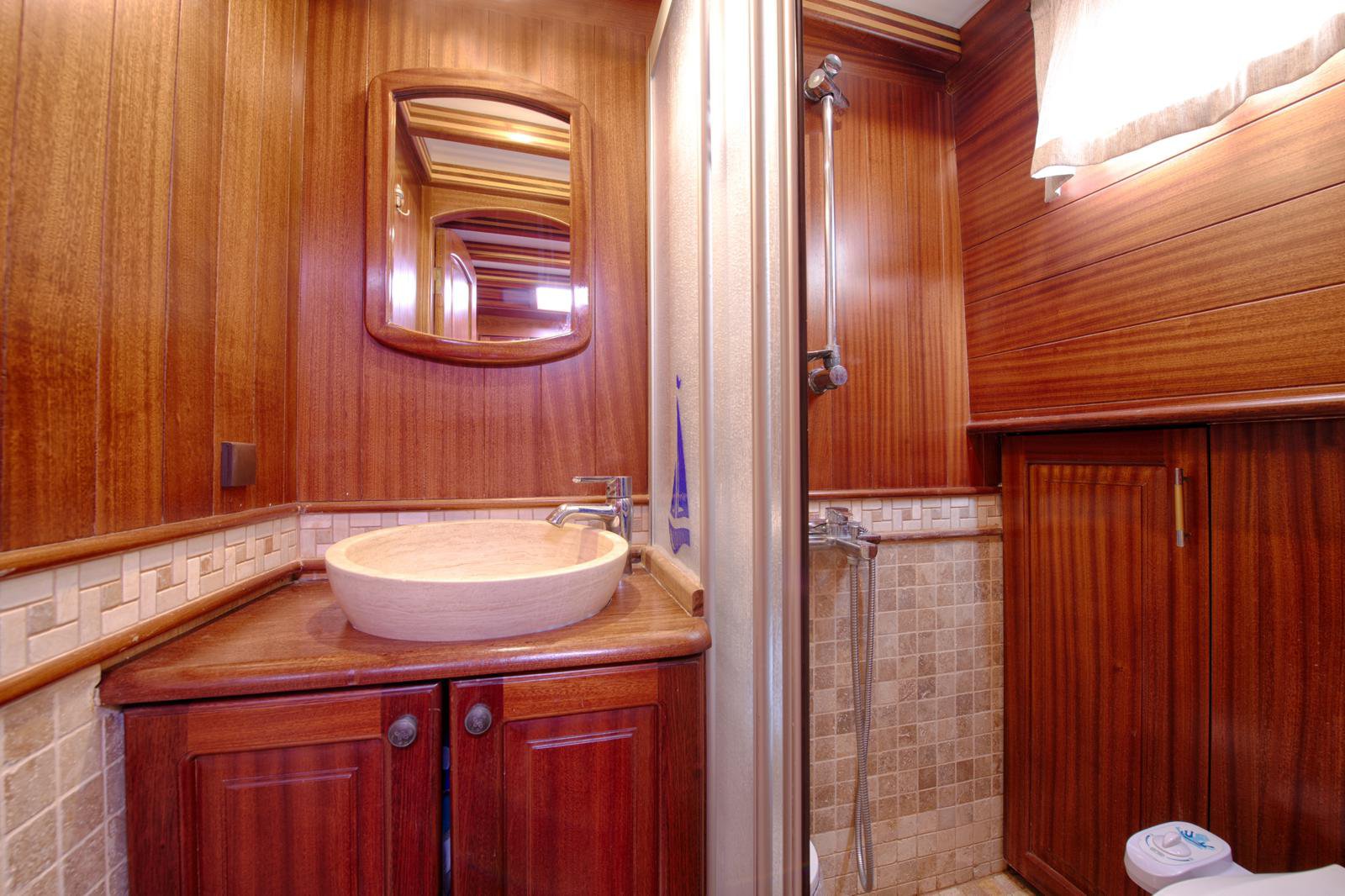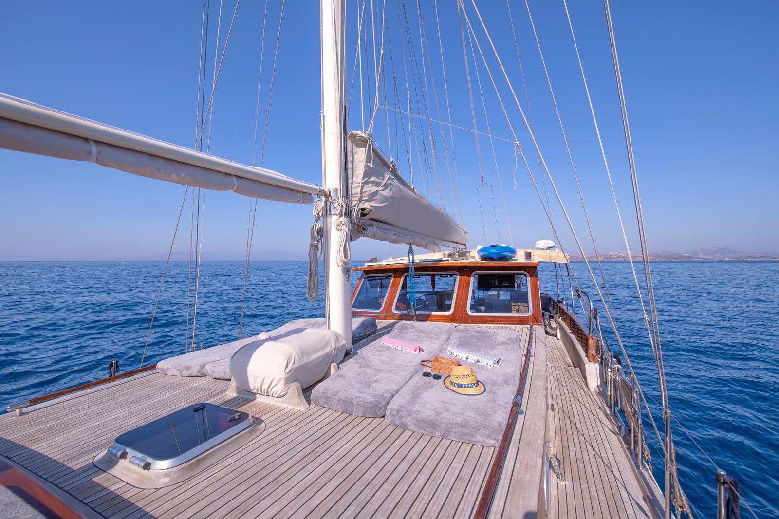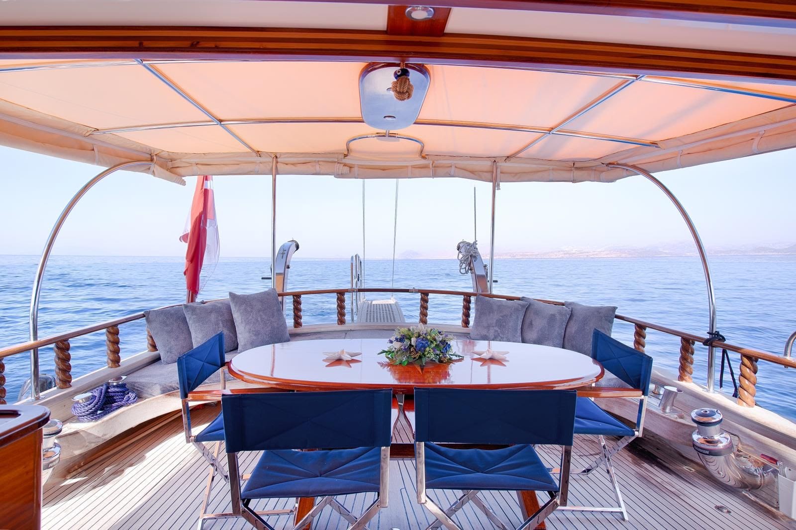 Atlas G is a 15-meter luxury Turkish ketch gulet offering an intimate yet refined cruising experience with Southern Cross Blue Cruising, accommodating up to 4 guests (maximum 8) in two elegant cabins, including a spacious master suite and a double cabin, each with a private bathroom. Designed to deliver the comfort and style of a much larger gulet, Atlas G features a fully equipped main saloon with TV, DVD player, and music system, while her extensive teak deck invites guests to relax on plush sunbeds, swim in crystal-clear waters, and enjoy unforgettable alfresco dining with panoramic sea views. Served by an experienced and attentive crew dedicated to personalized hospitality, every detail onboard is thoughtfully curated to ensure a seamless, luxurious, and truly memorable blue cruise experience.