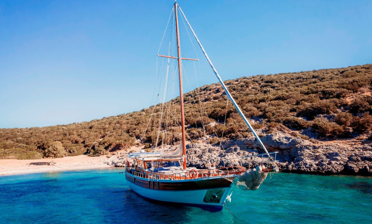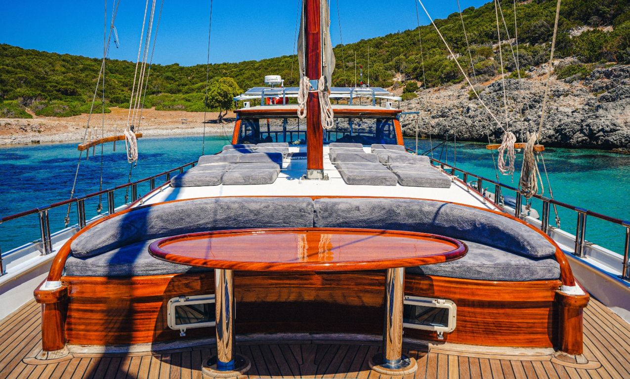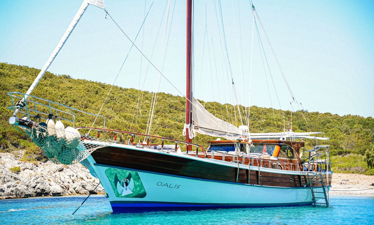 Gulet Oalis is a 19-meter classic gulet, built in 2011, offering a cozy and comfortable yacht charter experience in Turkey and the Greek Islands with Southern Cross Blue Cruising. Perfect for up to 6 guests, she features 1 master cabin and 2 double cabins, all air-conditioned with private WC and shower facilities. The yacht offers a spacious aft deck with cushioned seating and a dining area, an additional indoor dining table in the saloon, and a fully equipped separate kitchen for freshly prepared meals. Guests can enjoy ample sunbathing space, TV, DVD, and music system in the saloon, making Oalis an ideal choice for those seeking a relaxed, enjoyable, and affordable blue cruise experience on a classic gulet.