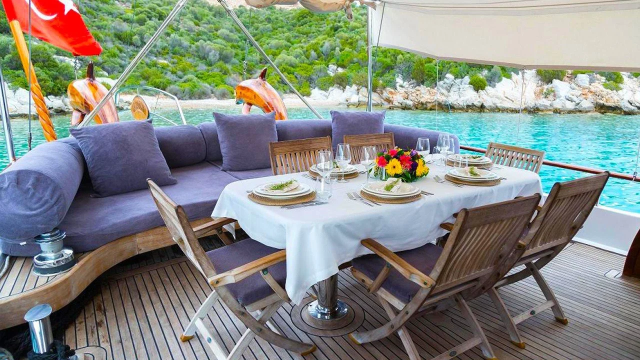 The charter price for the gulet includes an average of four hours of cruising per day over the course of the charter, crew, water, gas, Turkish port and harbor fees, insurance and use of the yachts’ equipment and toys.