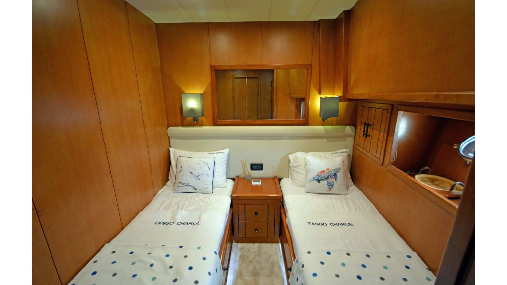 Tango Charlie is a 26-meter luxury motor/sailer gulet, built in 2011 by Cobanoglu Shipyards, offering an exceptional blue cruise experience with Southern Cross Blue Cruising in the Mediterranean. She accommodates up to 8 guests in 4 elegantly appointed cabins, including a master suite, two double cabins, and a twin cabin, with air conditioning and comfortable bedding for restful nights. Designed for outdoor living, Tango Charlie features multiple spacious deck areas ideal for sunbathing, alfresco dining, and relaxing, while onboard entertainment includes Wi-Fi, water toys, snorkelling gear, waterskis, wakeboards, and a 4.2m Zodiac tender for easy shore access. With a professional crew of up to 4, a wooden hull and superstructure, and a cruising speed of 9 knots, Tango Charlie combines style, performance, and personalized service for an unforgettable luxury yacht charter in the Mediterranean.