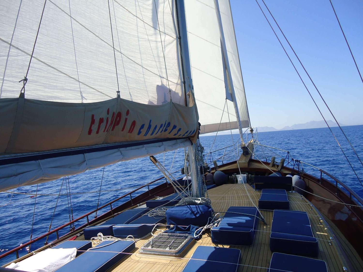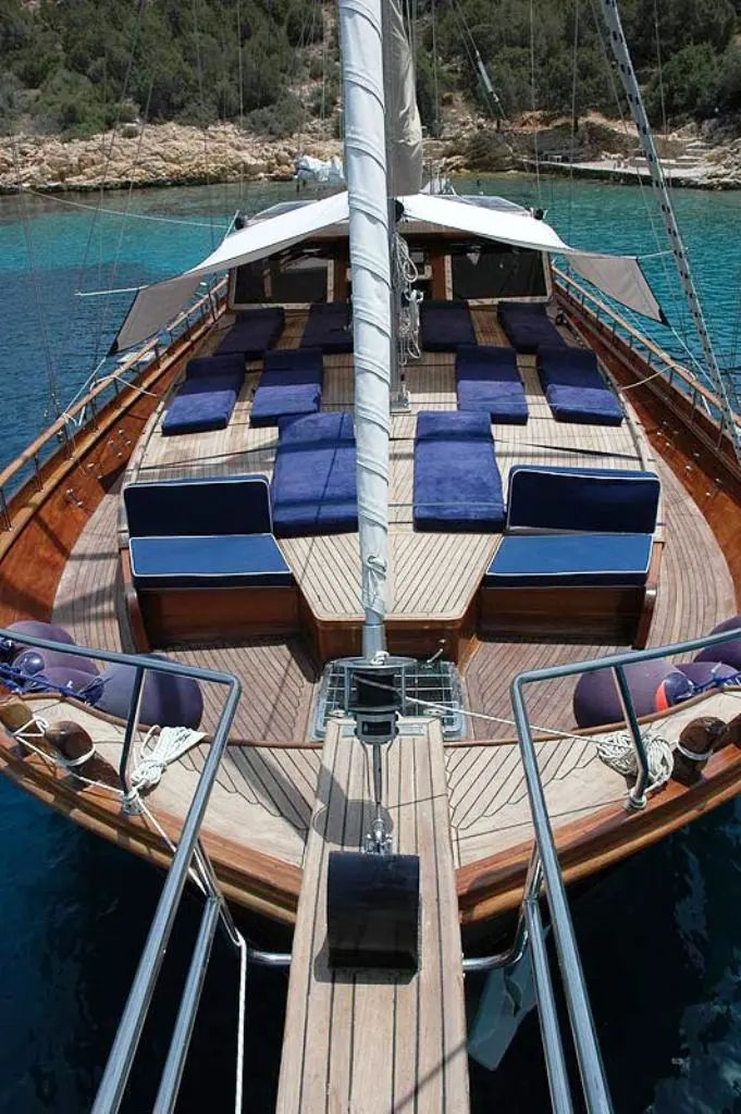 Gulet Trippin is a 20-meter classic gulet built in 2007, offering a comfortable and relaxing yacht charter experience with Southern Cross Blue Cruising along Turkey and the Greek Islands. She accommodates up to 8 guests in four air-conditioned double cabins, each with a private WC and shower, ensuring comfort and privacy for all. The yacht features a spacious aft deck with cushioned seating and a dining area, an additional indoor dining table in the saloon, and a fully equipped separate kitchen for freshly prepared meals. With ample sunbathing space and mats for all guests, Trippin is an ideal choice for families or small groups seeking a relaxing, enjoyable, and memorable blue cruise on a classic gulet.